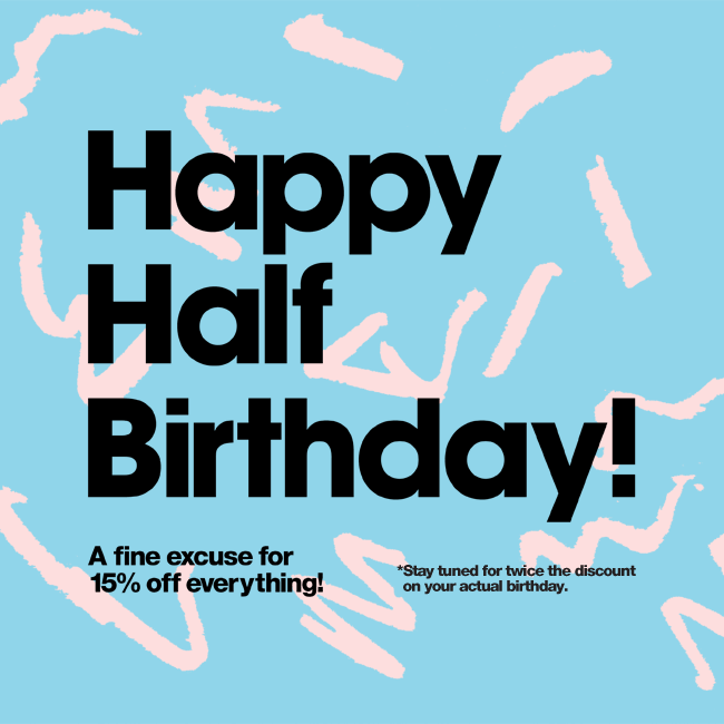 American Apparel’s GIF is here to say “Happy Half Birthday,” along with a sweet discount and offer; that you’ll be getting another one on your actual birthday, so you have more to look forward to this month.