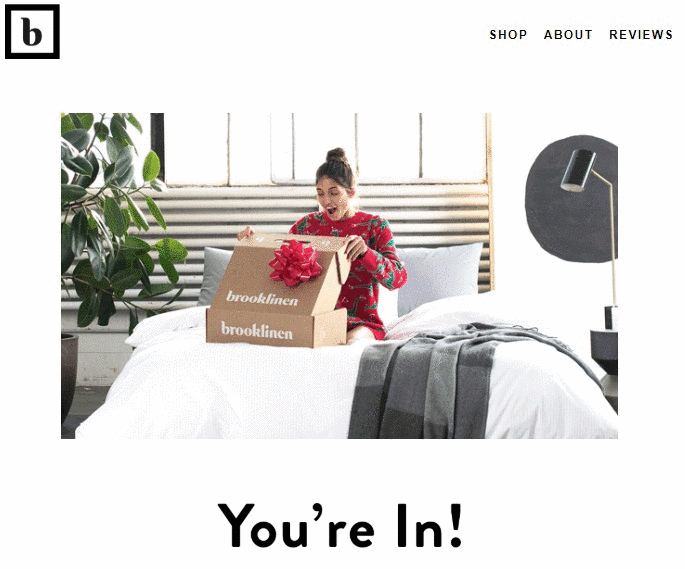 This Brooklinen Christmas email shows one happy Brooklinen-er enjoying a box of goodies from their fantastic website.