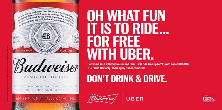 Take Budweiser, for example. In 2016, Budweiser teamed up with ride service Uber for a seasonal campaign to stop people from driving drunk. With a code, they could get one ride free (encouraging safe drinking practices, as well as introducing people to Uber), and promoting Budweiser as the carrier of the promotion.