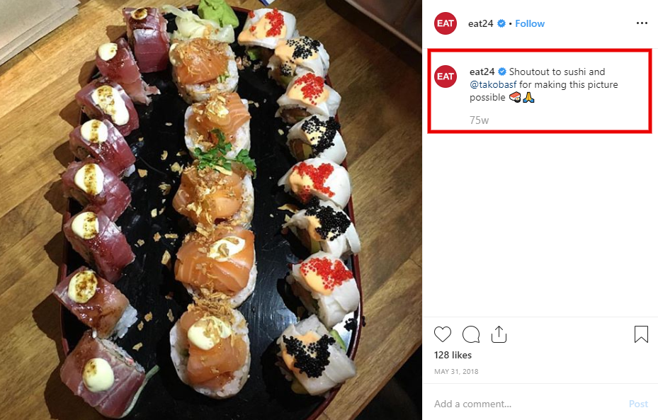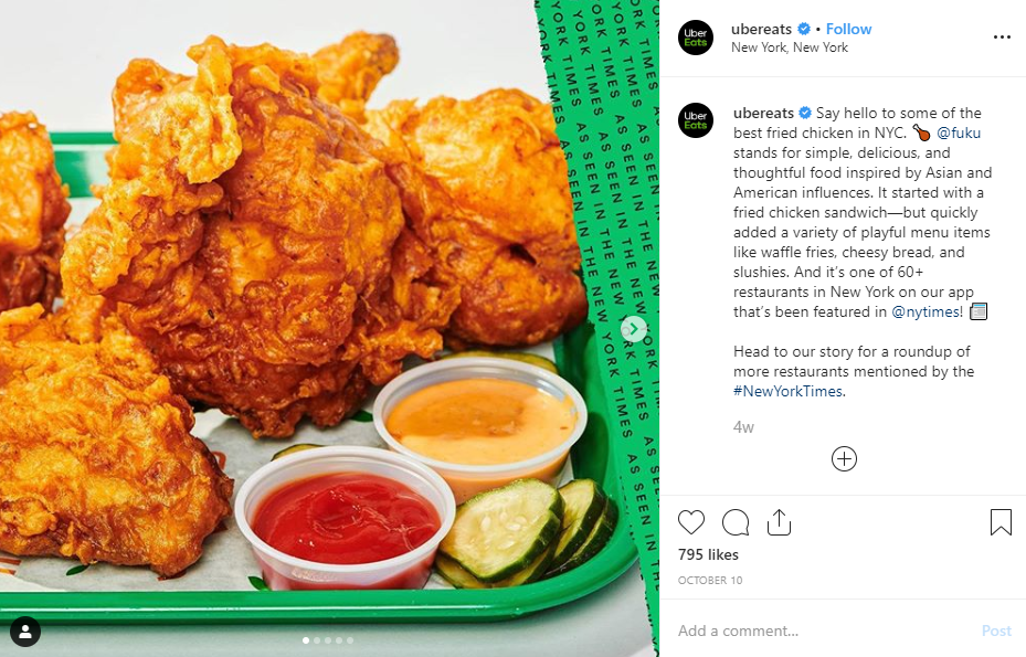 Around 40% of consumers learn about food online more than ever before. Since your delivery service is in the business of food, create content focused on food. Brandon Gaille found that 72% of food pics on social media are of the main dish. People are willing to share, like, and discover pictures of food.