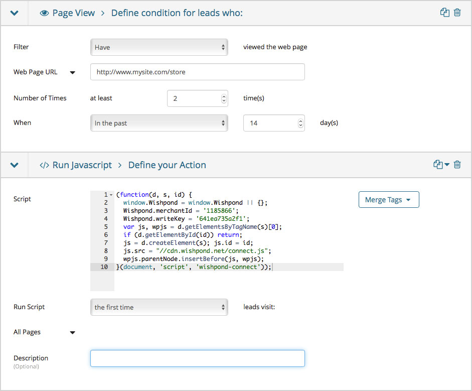 Though most workflows are pretty simple, you can also set up marketing automation to add certain properties to your leads, run Javascript, or send internal emails – for example, you might want to send an email to your sales team when a lead has visited your pricing page, or has looked extensively at your product features.
