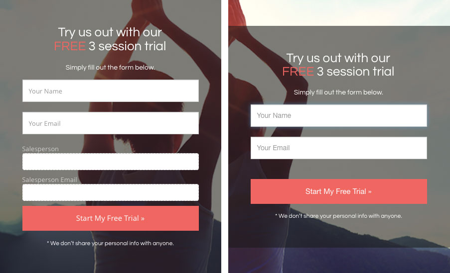 Here’s what our form looks like from the landing page editor, compared to how it looks on the live landing page: