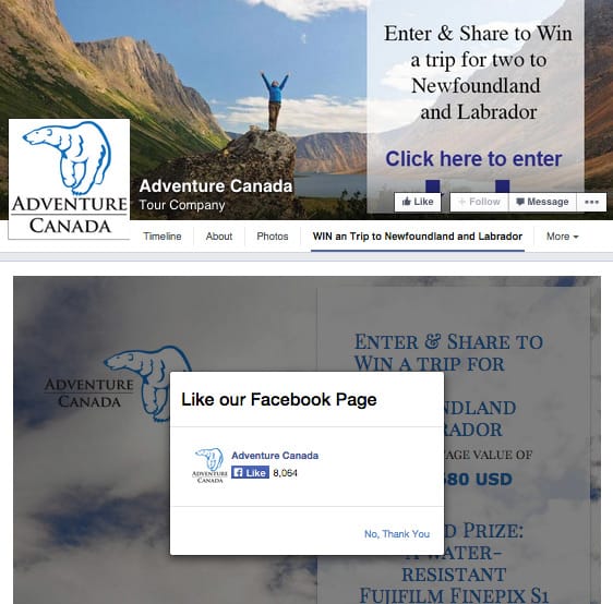 Check out an example of a “Like” Popup below from Adventure Canada: