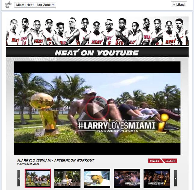 The Miami Heat have created an entire Fan Zone in the Tab on their Facebook Page. It includes videos, photos and more of interviews and behind-the-scenes looks at Heat players. Check it out below: