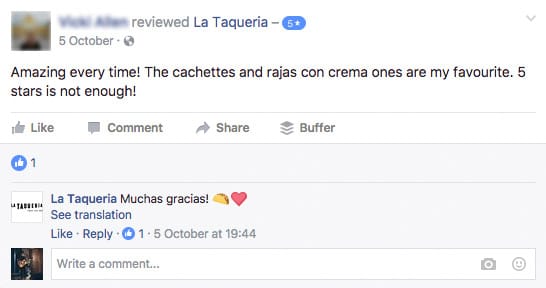 Like I mentioned previously, your Facebook profile is often the first point of contact for people who are researching your business. Getting customers to review your business helps establish credibility and convince new visitors of your business’ benefits. Having a slew of good reviews shows customers you’re the real deal, and can help increase Facebook likes in the process.