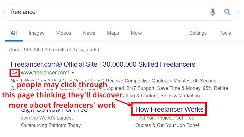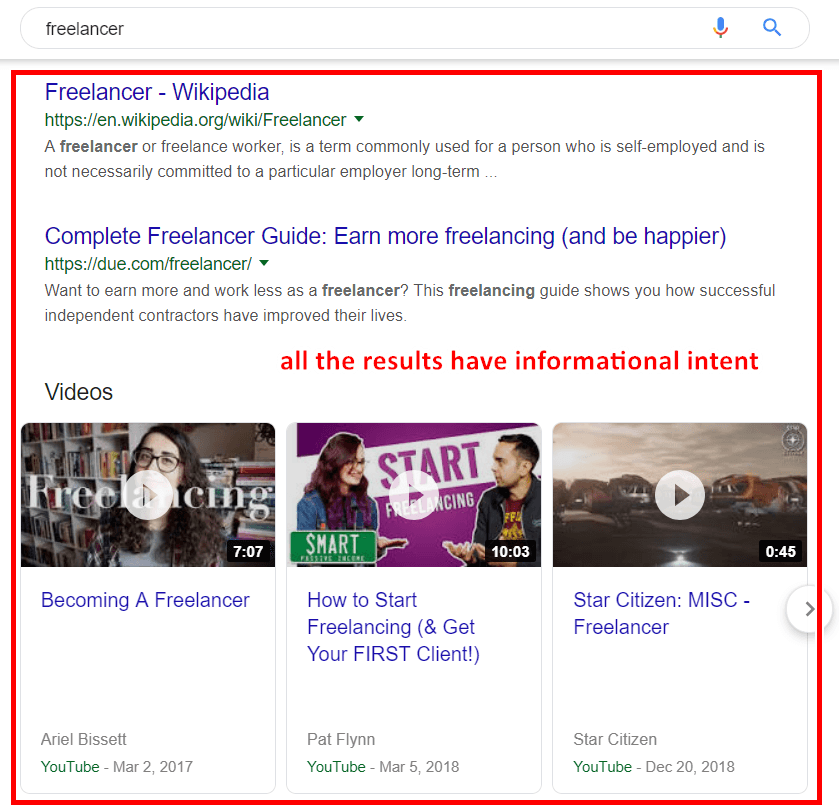 For instance, if you search for a ‘freelancer’ keyword, what are you expecting to find in search results? The query is so general, that it’s most likely that you’re looking for a description of the word.