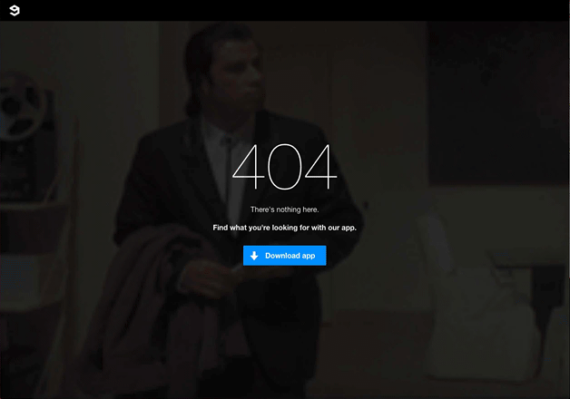 9GAG is the father of all memes and the community that powers it. They host a wide range of videos, images, and GIFs from all over the world. When you land on a 404 page on 9GAG, you’ll meet Pulp Fiction’s Vincent looking for Mia (which has become a cultural symbol for confusion) with the caption: “There’s nothing here”.