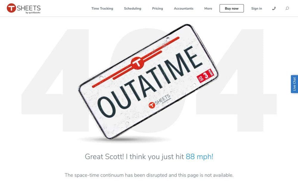 TSheet is a scheduling app that prides itself on accuracy and timely analytics. In keeping with that, they referenced the line where Dr. Emmet Brown achieves precisely 88 mph using his Flux Capacitor.