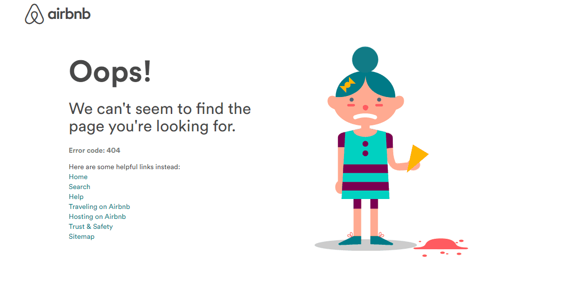 No one likes to drop freshly-scooped ice cream, just like no one likes to land on a 404 error page. So AirBnB decided to use a simple illustration to show just that.