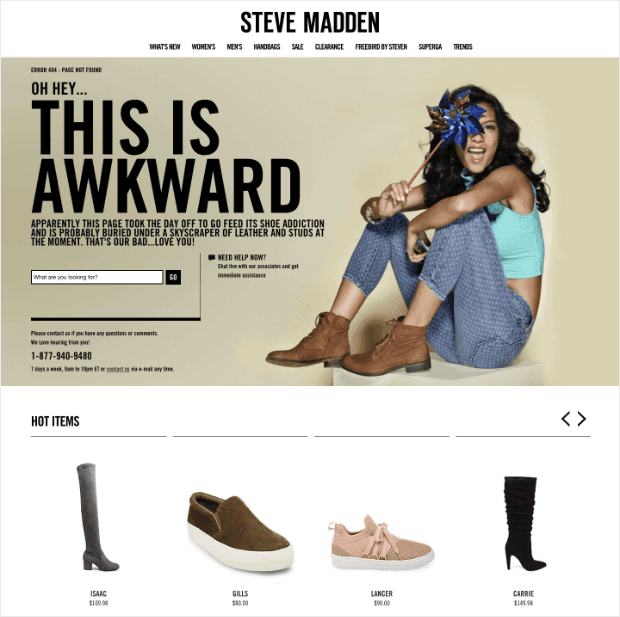 Don’t be afraid to add some product placement on your 404 pages. If they came to shop, let’em shop, and provide customer service in case they need help since they didn’t find what they were looking for on your website.