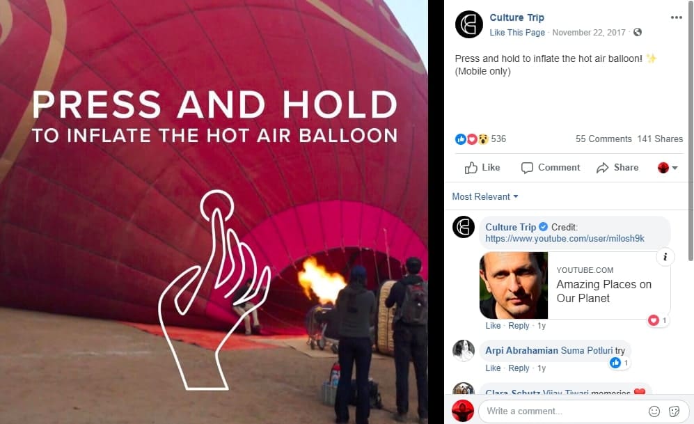 Press and Hold videos and ads allow the customer to get a better experience and increase brand engagement. Check out Culture Trip’s Press and Hold Video post with your mobile to see how this feature works.
