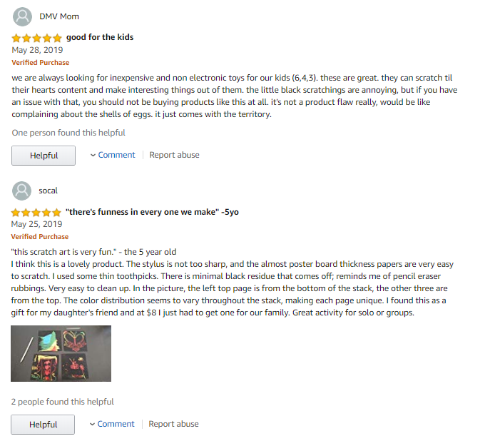 Potential shoppers who will find themselves in the comment section will see numerous reviews left by satisfied parents who, as you can see in the second review, will even quote their child’s exact words to show that their purchase was a success.