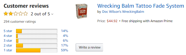 As you can see, the majority of the reviews on the Wrecking Balm Tattoo Fade System are mainly negative, with 76% of users leaving a 1- or 2-star review.