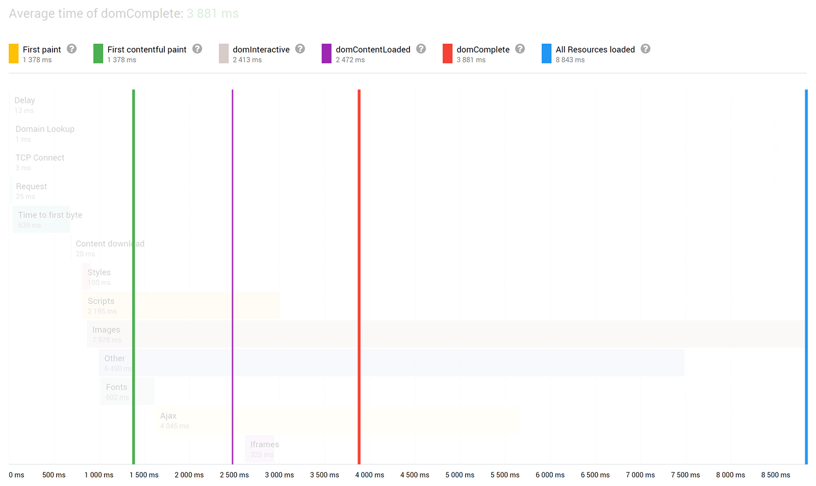 - Site Speed: If your site takes a lot of time to load, prospects will bounce back before even checking what you have to offer. Resources that are more likely to affect your loading speed, include ajax, scripts, and images. Use a combination of tools like Google Page Speed Insights and Finteza to optimize your page speed. The First Contentful Paint or FCP plays a major factor in the coming Page Experience update from Google. Finteza lets you analyze the median load time for the different page loading stages including the FCP. You can easily identify your page speed at different stages of the visitor journey and optimize the speed accordingly.