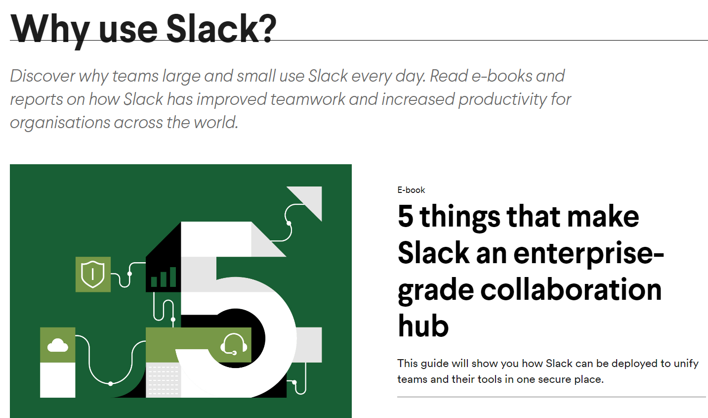 Not only that, but Slack also has a resources page that contains blogs and ebooks about why to use their product.