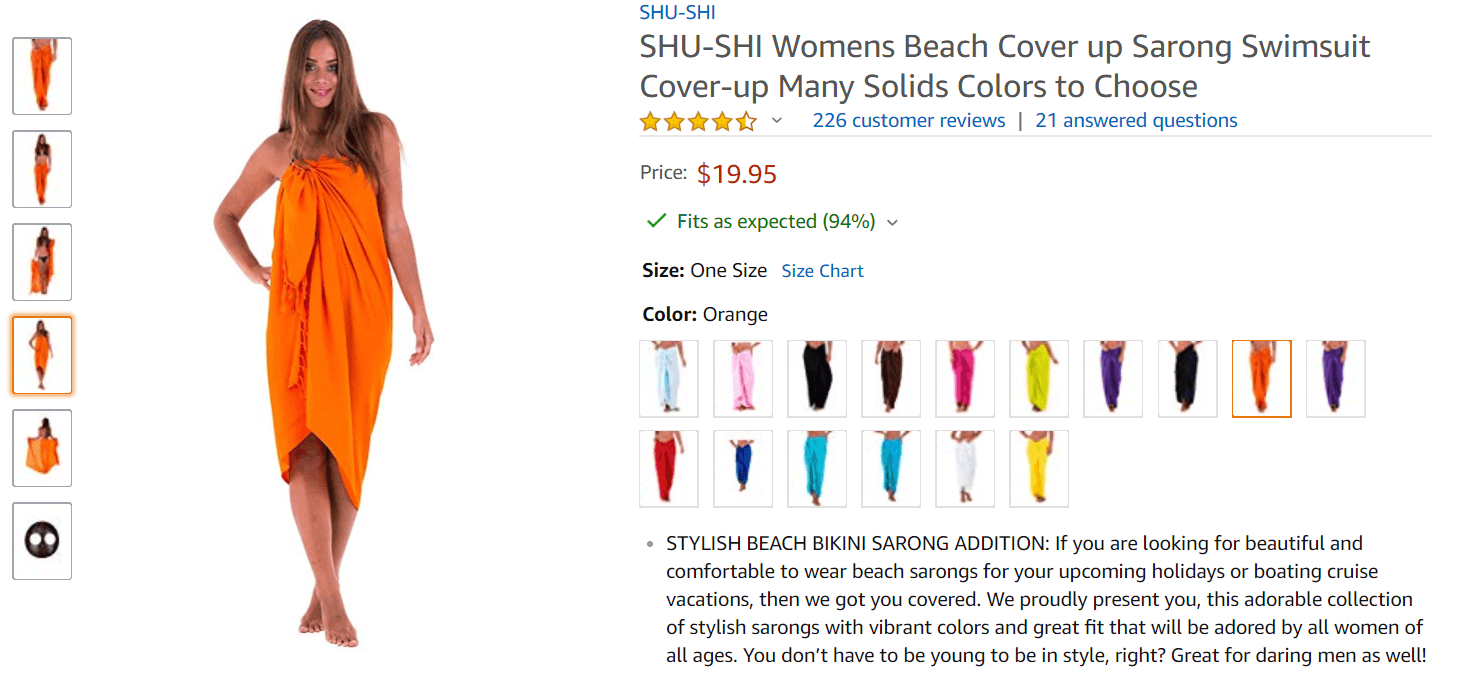 For example, check out how this Amazon retailer showcases how you can style their sarong in multiple ways: