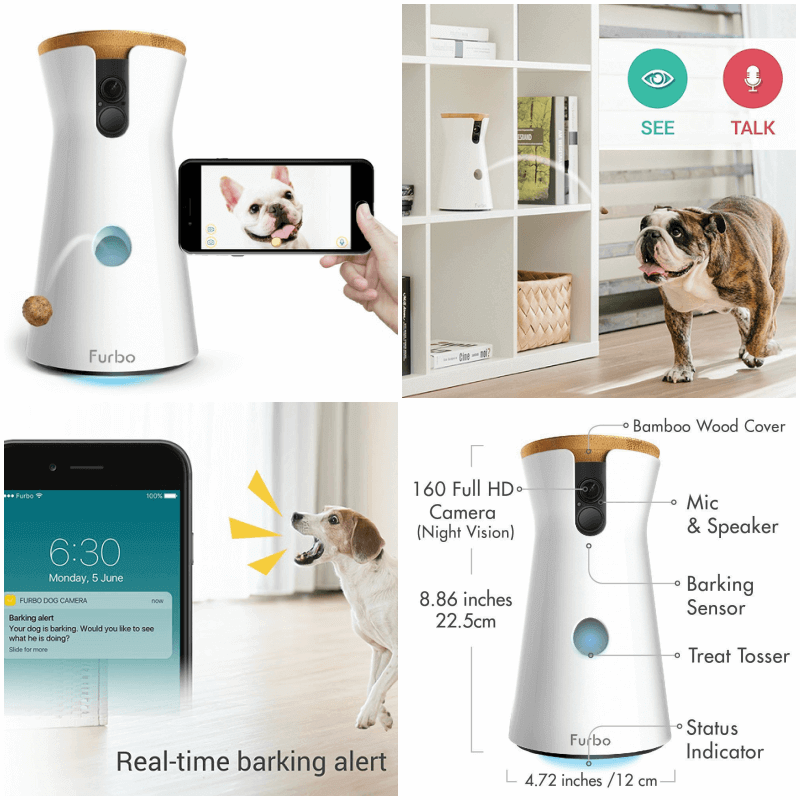 - A picture pointing out the product features and finer details of Furbo’s dog camera.