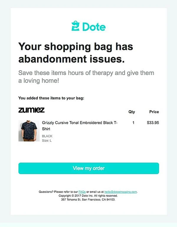 Shopping Cart Abandonment Campaign: Nearly 40% of surveyed consumers responded that they abandoned their shopping cart because they had been just browsing in the first place. When you send shopping cart abandonment email campaigns, you give visitors a reason to go back to your store and complete a purchase.