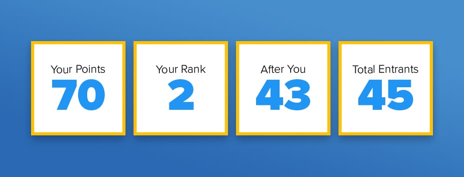 Finally, the entrant panel shows each of your entrants how they’re doing in the contest, giving them stats like the number of points they have, their position, and how many other entrants are in the contest.