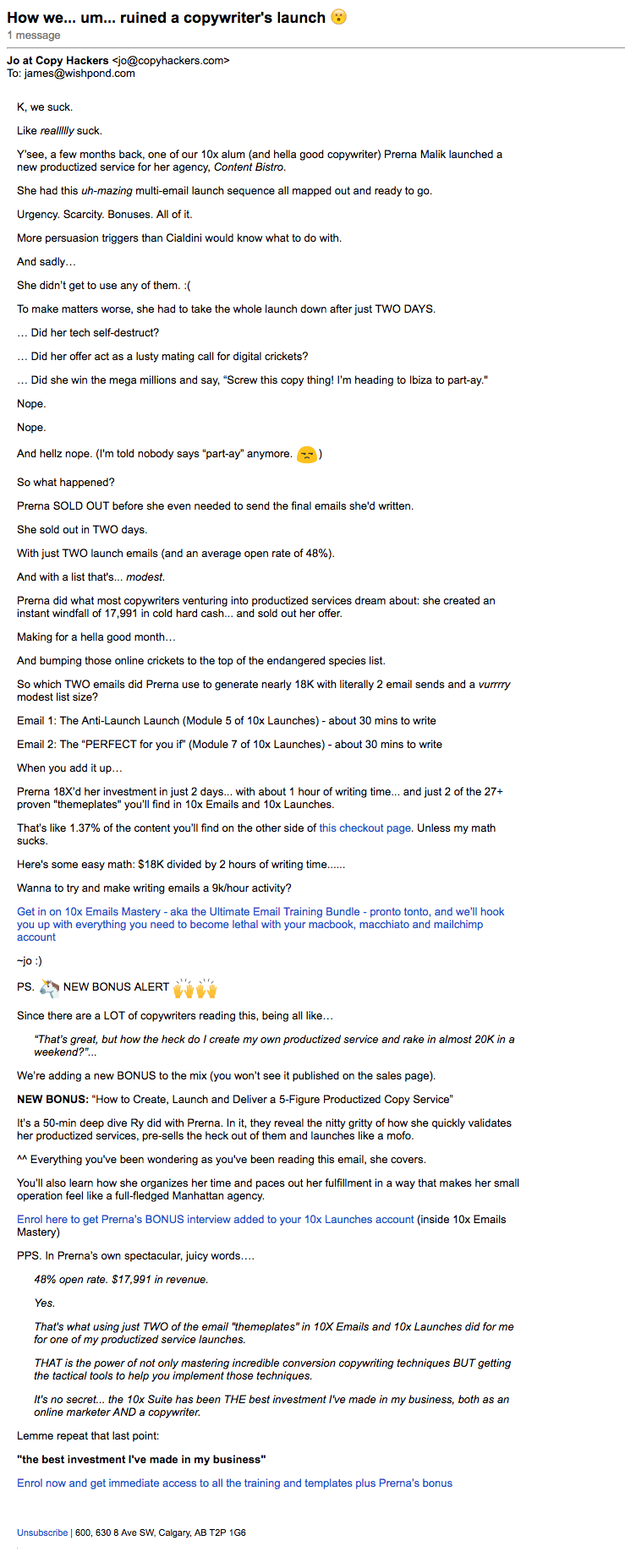 I’m going to break down Joanna Weibe’s email, because she’s the queen of online copy: