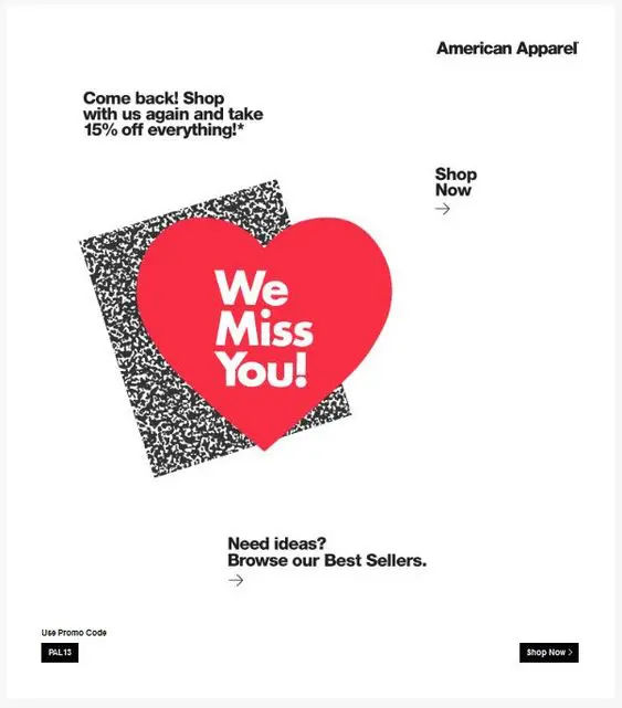 Here’s an example from American Apparel: