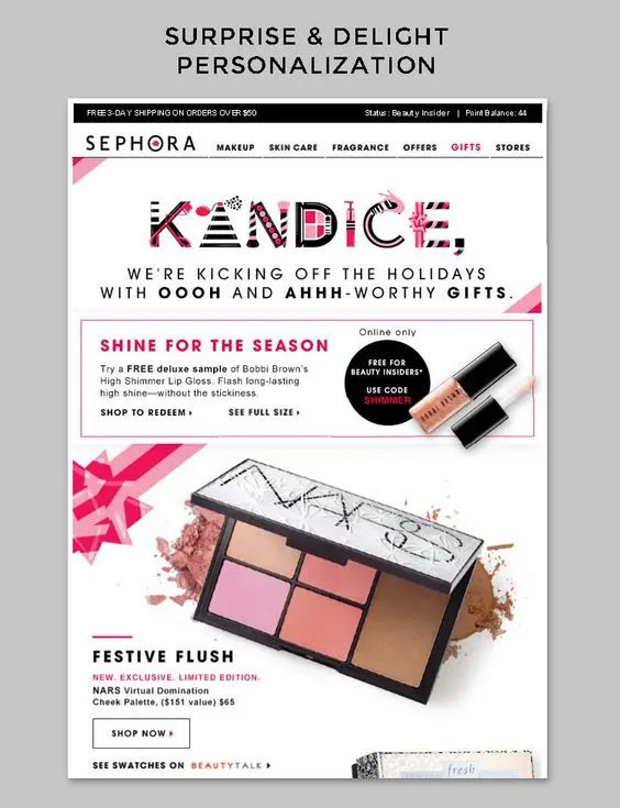 Here’s an example of how Sephora delights subscribers by decorating their names: