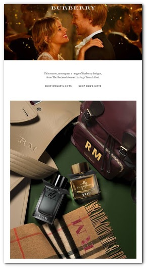 Here’s an example of how Burberry creatively incorporated subscriber initials into their product visual (i.e. scarf) to make it look more personal: