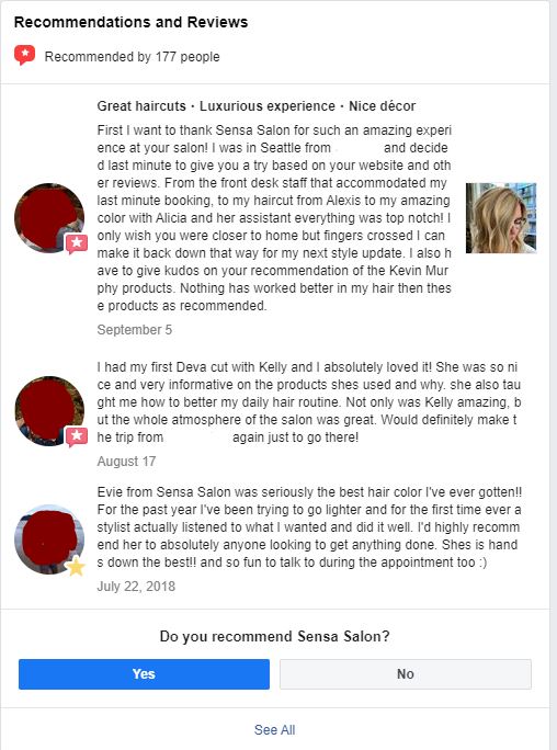 Check out the reviews from Sensa Salon — one customer from out of town even states she was pulled in the doors by the other reviews.