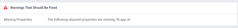 Share App ID Missing: You’ll only see this error if you integrate a separate app with Facebook. This warning tells you that you didn’t set the app_id property on your website before you tried to share it.