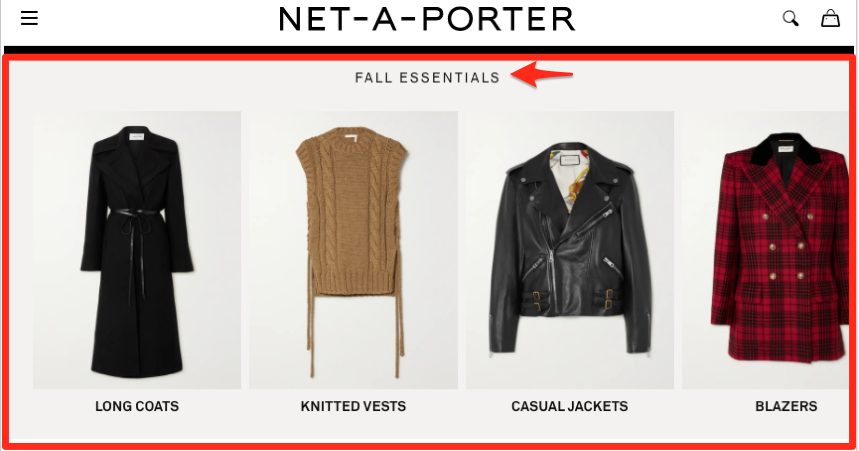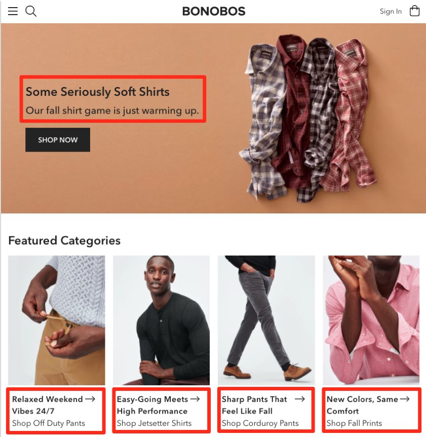 Like Linksoul, by explicitly telling customers where to go for fall looks, they make it much easier to browse and find the pieces they’re looking for. This opens the door for more conversions.