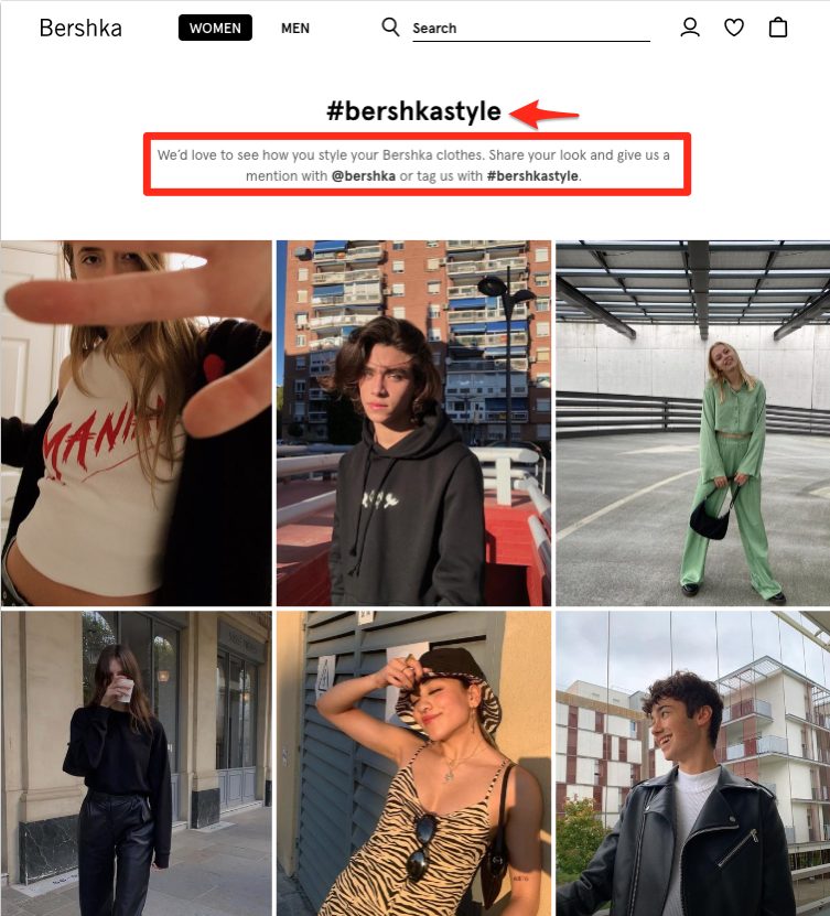 And similar to #MANGOGirls, Bershka also promotes its social media hashtag (#bershkastyle). Clicking this takes people to a wall of images straight from their customers’ Instagram accounts.