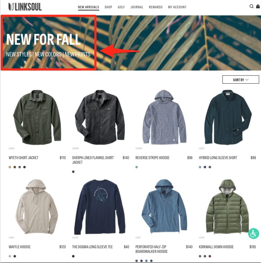 Linksoul, an online men’s clothing line that helps their customers go from the beach to the golf course, knows their buyers need help reducing decision fatigue. So their marketing team guides visitors towards what to wear when the temps start to drop.