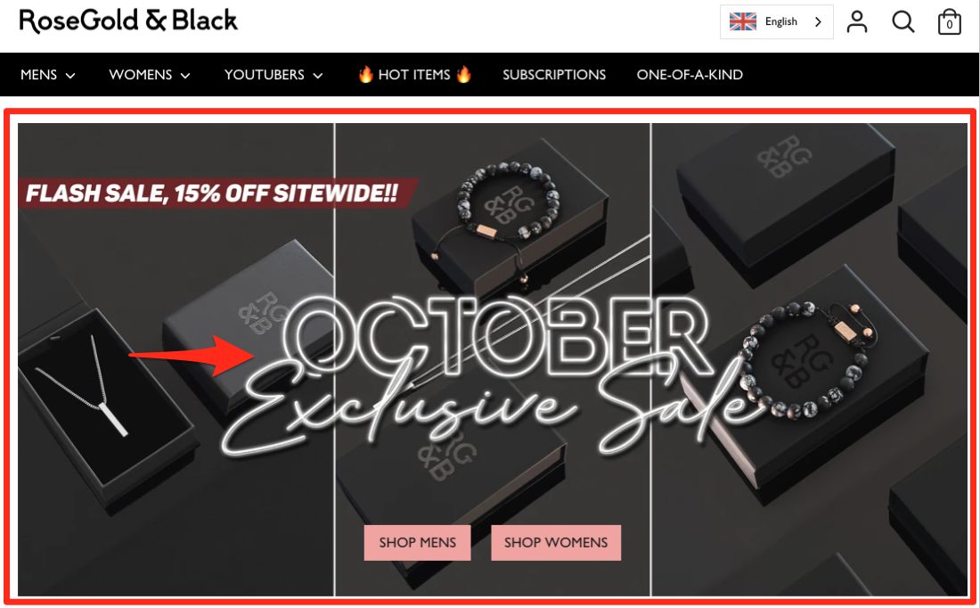 You don’t need pumpkins and goblins plastered all over your website to promote seasonal offerings, and that’s exactly what online accessory brand RoseGold & Black proves: