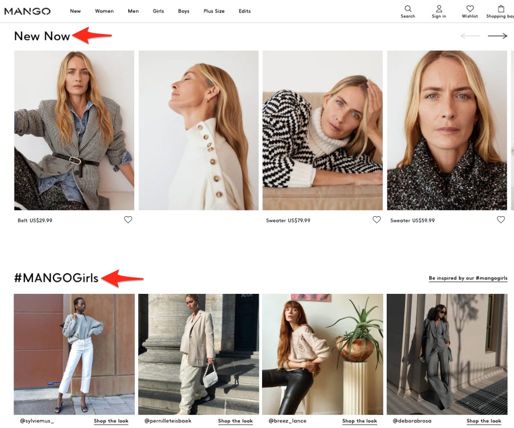 Similar to MODA OPERANDI, MANGO features a “New Now” section that draws fashionistas to the latest outfit drops. This is a stellar way that brands can drum up excitement for new products and capture recurring business.