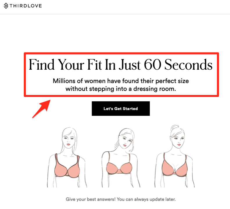Takeaway: So many landing pages today look the same. Find ways to incorporate more interactive content like ThirdLove onto your pages.