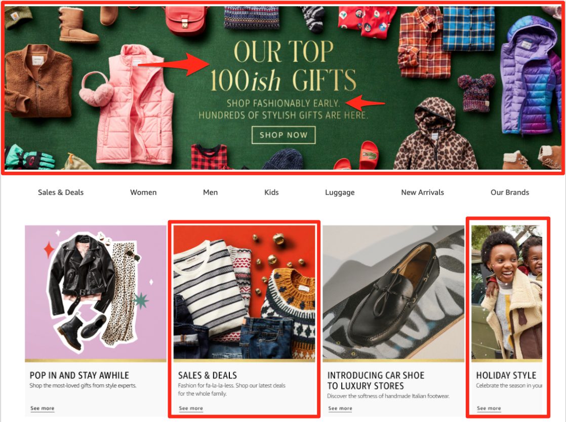 Their Top 100ish Gifts help people knock out their holiday shopping “Fashionably Early” with sales and deals for “fa-la-la-less” (catchy messaging!). And their Holiday Style Guide allows browsers to pick out something for themselves while they shop for gifts for others.