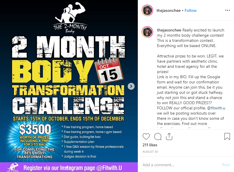 These contests usually run for 30-90 days so that participants have enough time to go to the gym, balance their diet/meal plans, and can capture and upload their results.