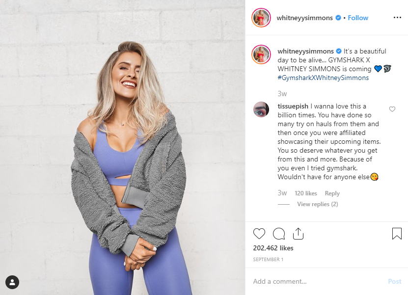GymShark Fitness Infleuncer Whitney Simmons