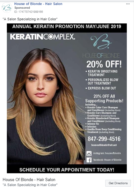 During peak hours when clients are looking for new hair salons to book, start promoting geo-targeted to drive local customers to your salon door.