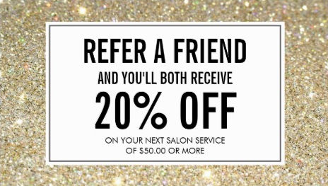 Give customers and their referral a discount on their next salon visit. You can create referral cards to track your program and ensure that customers aren’t abusing your referral program.