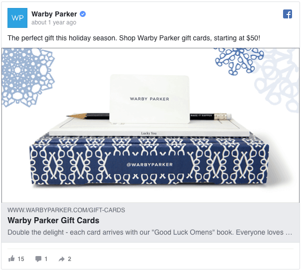 Here’s a Facebook ad they ran last year promoting their giftcards as a perfect holiday gift: