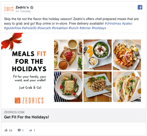 Here’s a Facebook ad they ran last year promoting their holiday meal delivery service: