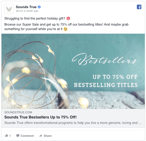 Here’s a Facebook ad they ran last year promoting their holiday discounts: