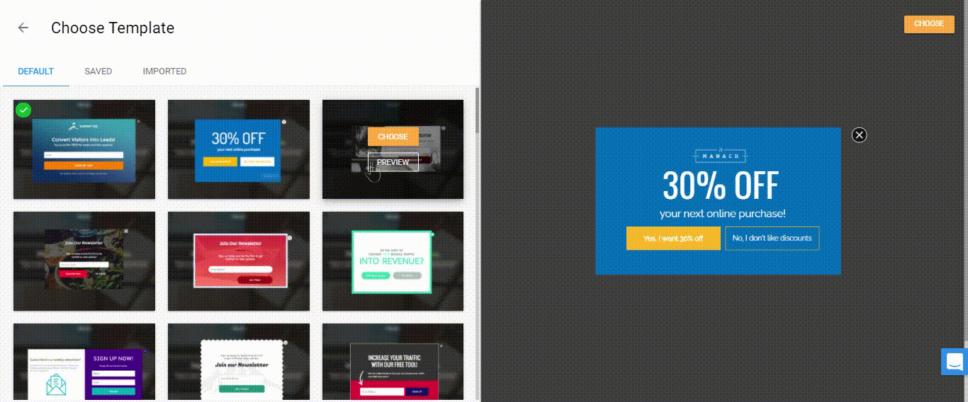 Timed Pop-Ups work by appearing on a landing page or website after a visitor has remained there for a designated amount of time. Some providers allow you to set it only at a few increments (10 seconds, 30, and 60, for instance). Others (like Wishpond, cough cough) allow you to test the time that works best for you, enabling you to see if 26 seconds works best, or 47, or 183.
