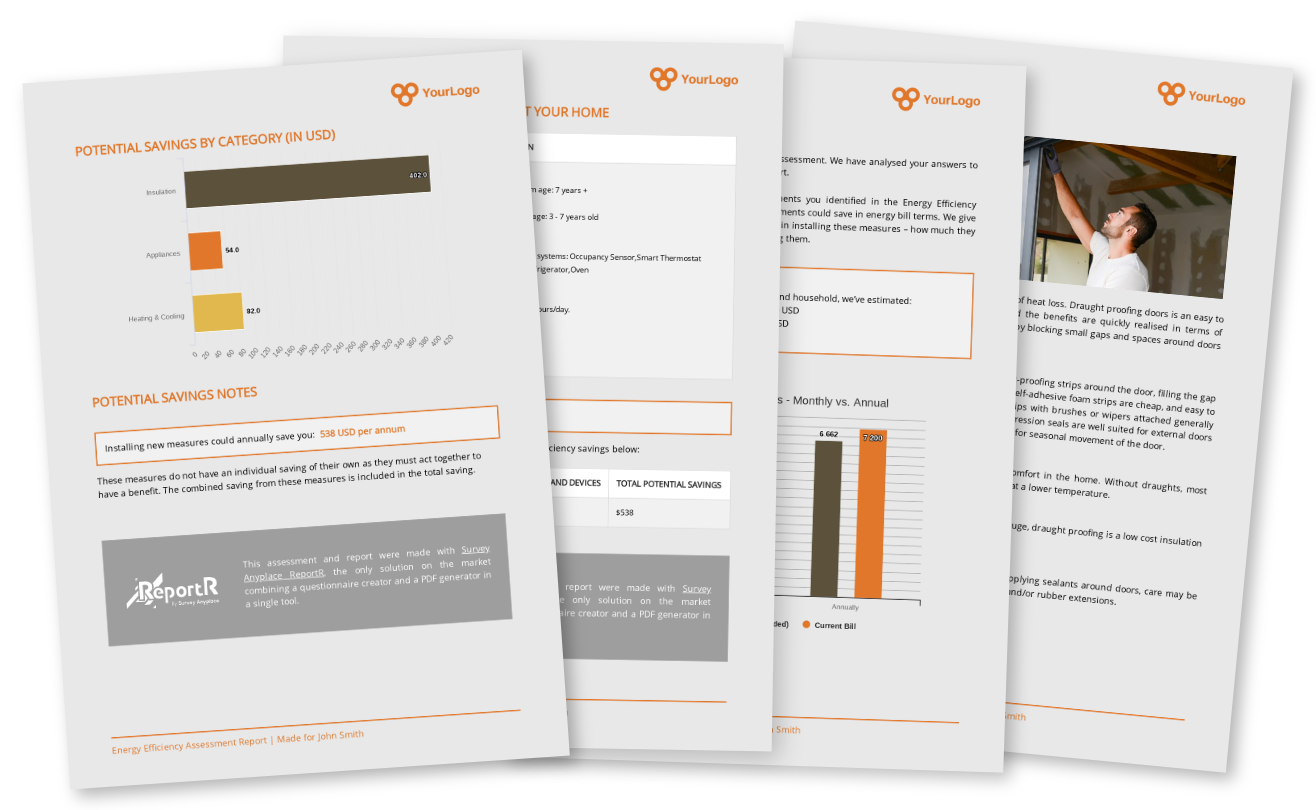 You can equip your customer with all the information they need regarding their needs and possible solutions in the form of tangible, useful feedback for the future. Automatic reports with detailed information around their pain points—including research, statistics, benchmarks, etc.—as well as in-depth information about your solutions and recommendations will guide your customers to a final decision.