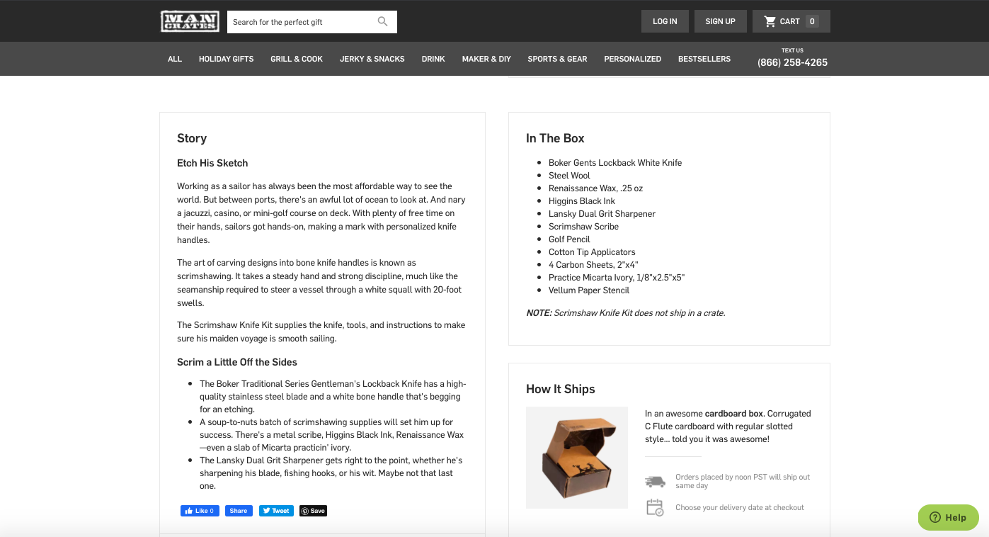 One website that excels at this is Man Crates, a gift-giving website for men. They understand that those purchasing the gifts might not know exactly what they are seeking. That’s why the copy of the website works so well. It skips, or explains, the “language” of the gifts in a way that isn’t intimidating. The wit included in the jargon expresses the value and helps the decision makers, well, make their decisions.