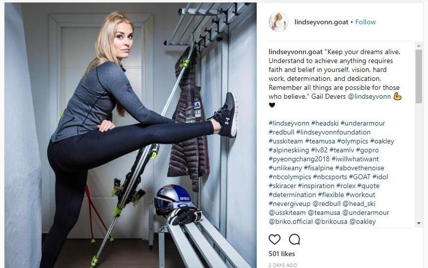 Screenshot via Instagram via @lindseyvonn.goat, #UnlikeAny Campaign