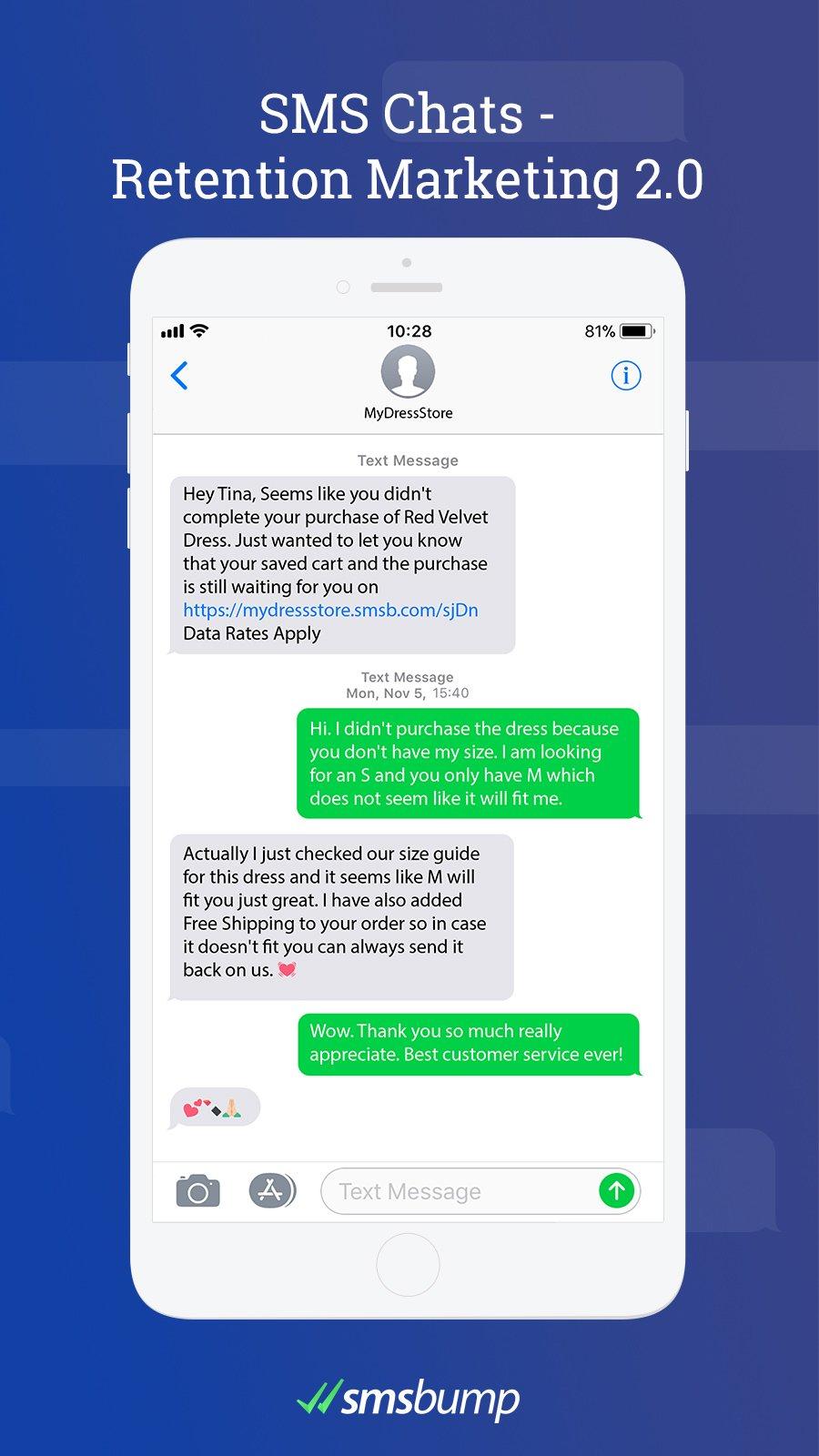 Customer Support: This is critical to the success of any eCommerce business. SMS gives your support representatives the ability to communicate from anywhere at any time with customers. A customer can text in a question and support teams can respond from an email or phone.