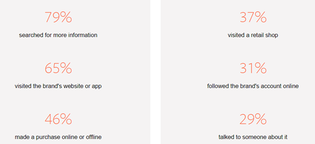 They either visited the brand’s website, followed the brand, or conducted more research. 46% of them bought the products either offline or online after seeing them on Instagram.