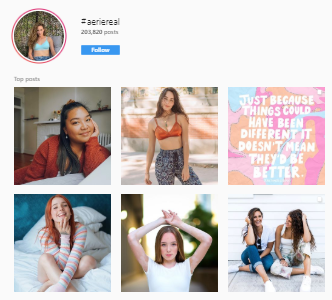Their hashtag #AerieReal encourages women to celebrate what makes them unique, and women have contributed while wearing Aerie’s products.